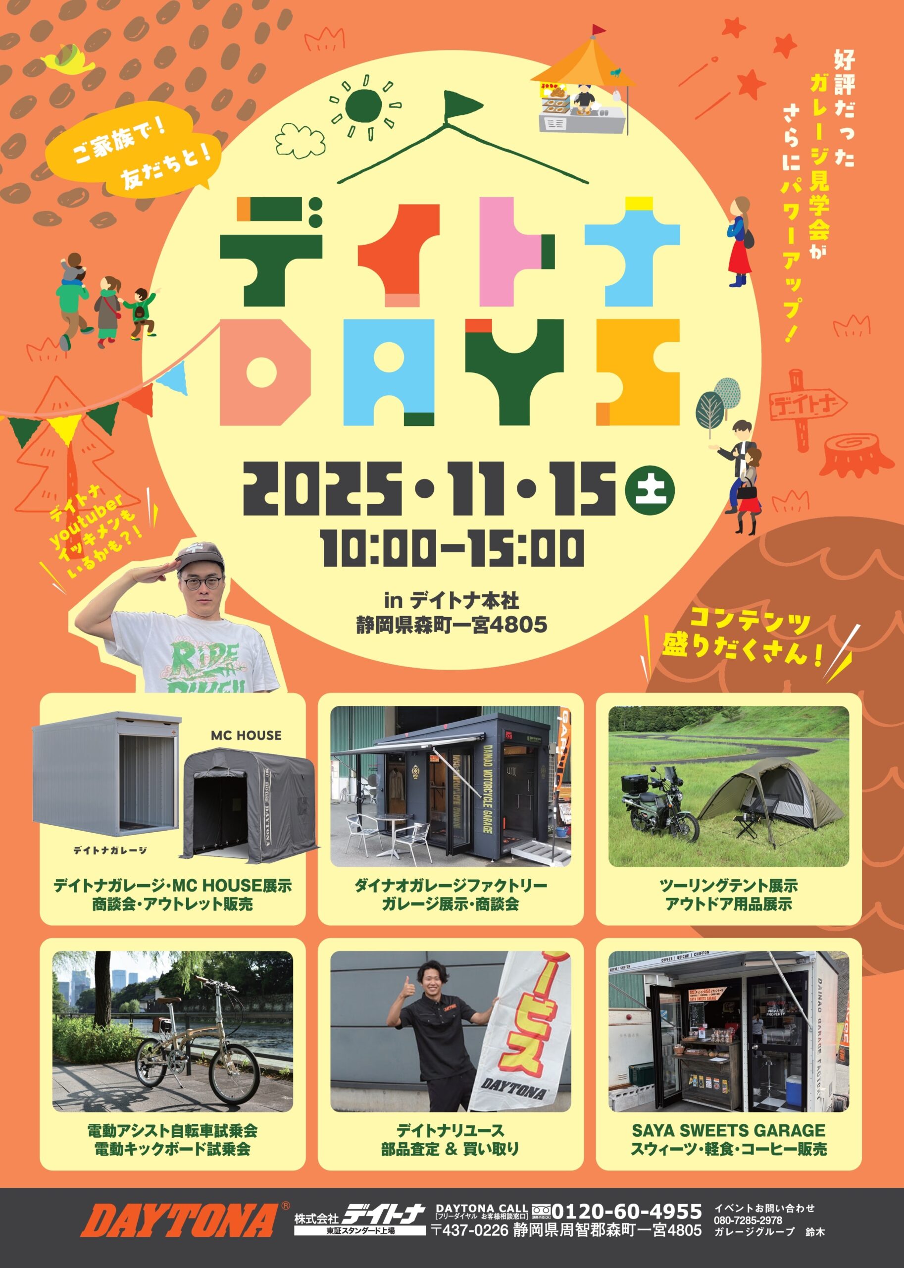 少し先のお話にはなりますが、11月15日(土)ぜひデイトナ本社へお越しください!