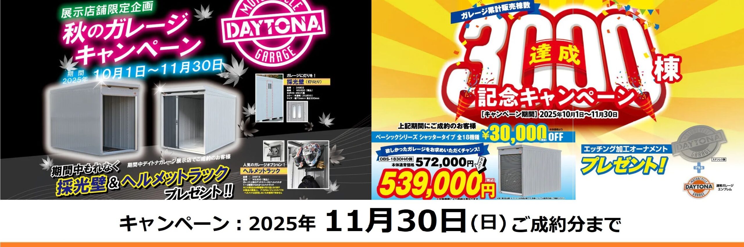 「2025秋のガレージキャンペーン」および「3000棟達成記念キャンペーン」実施中!