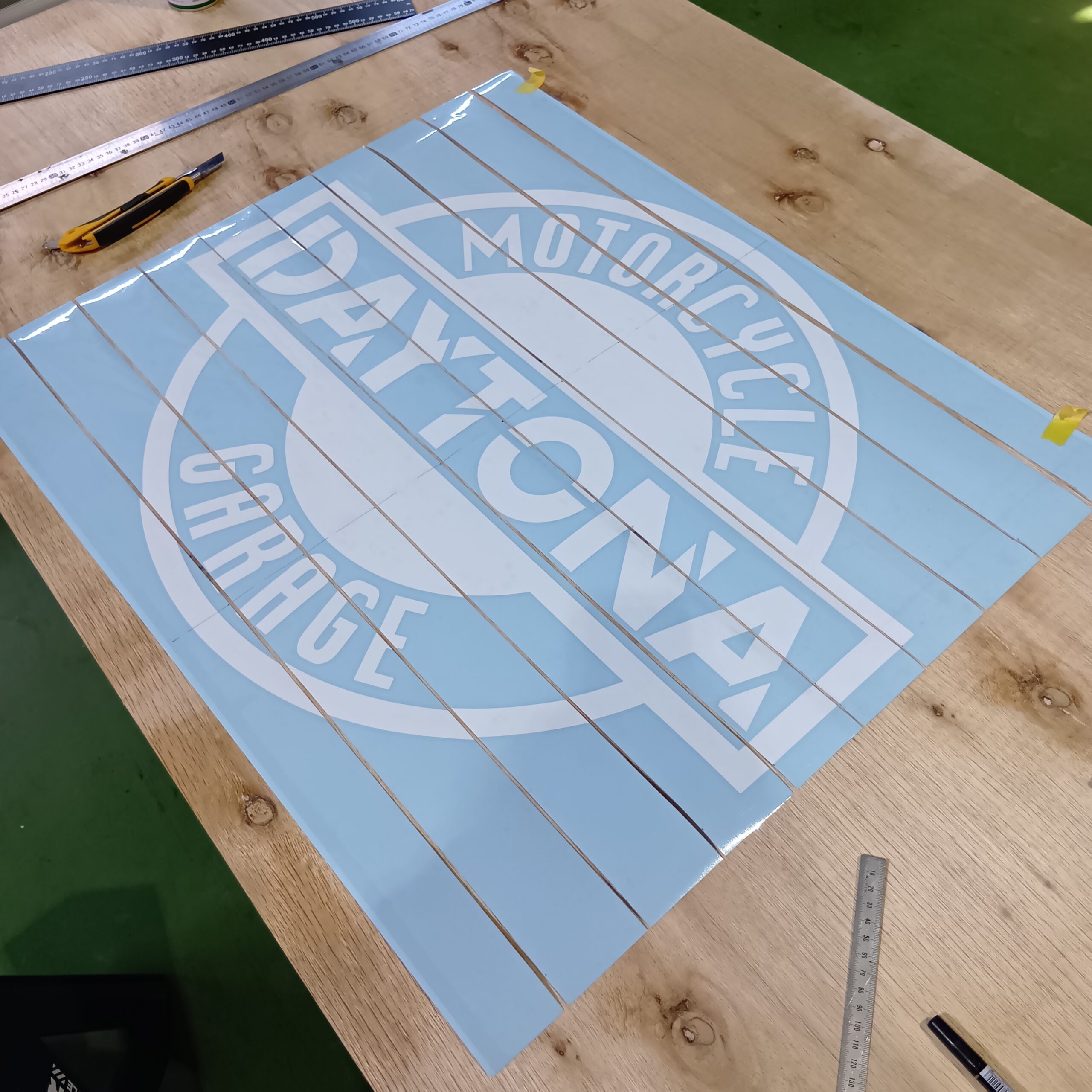 過去に自分のデイトナガレージに貼ったことがあるのですが…慣れないせいか7時間掛けて貼ったのを覚えています。