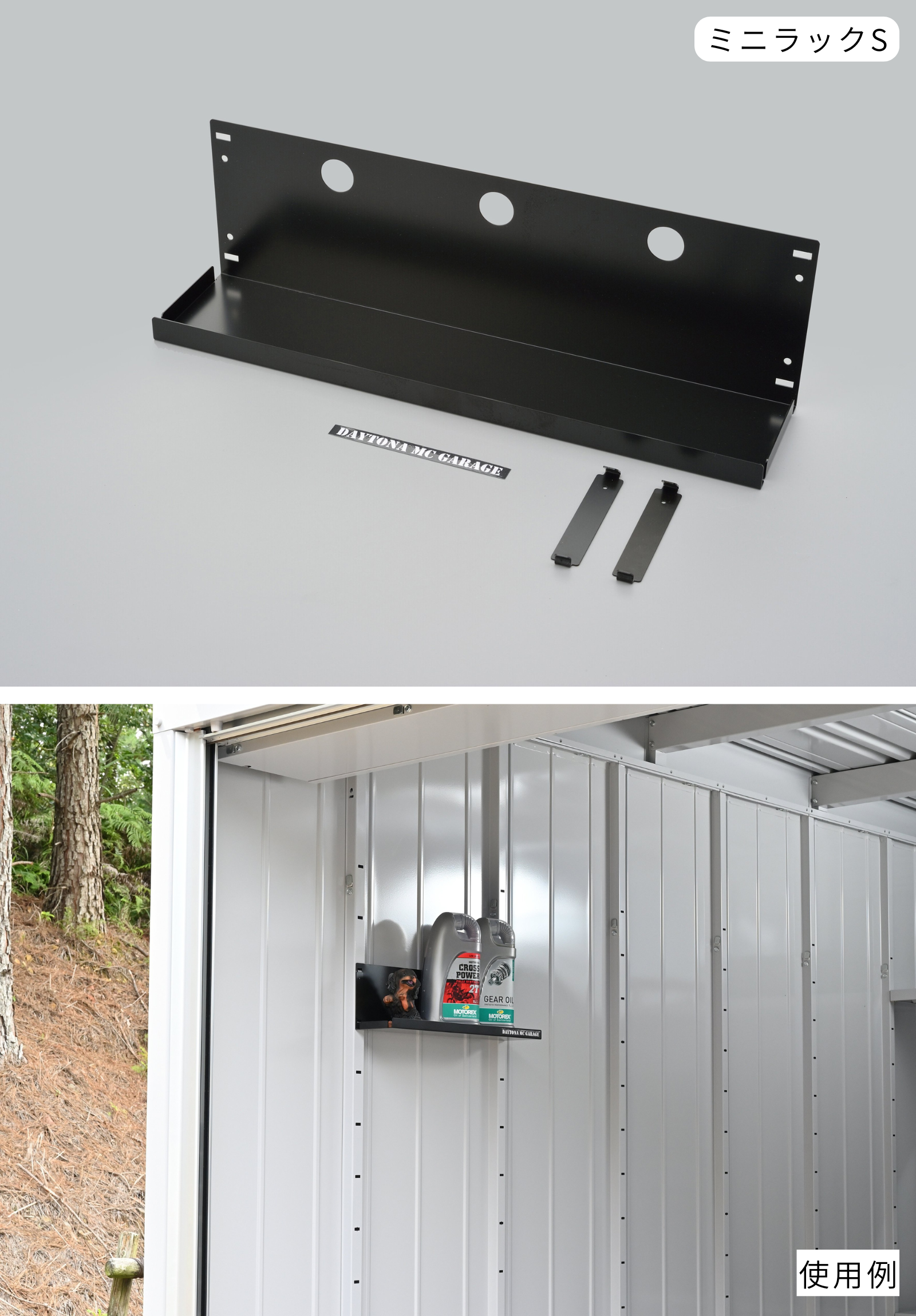 ミニラックSは、壁パネル420mmピッチの角穴に取り付けられる薄型ラックで、ちょっとした物を置くのに便利です。
