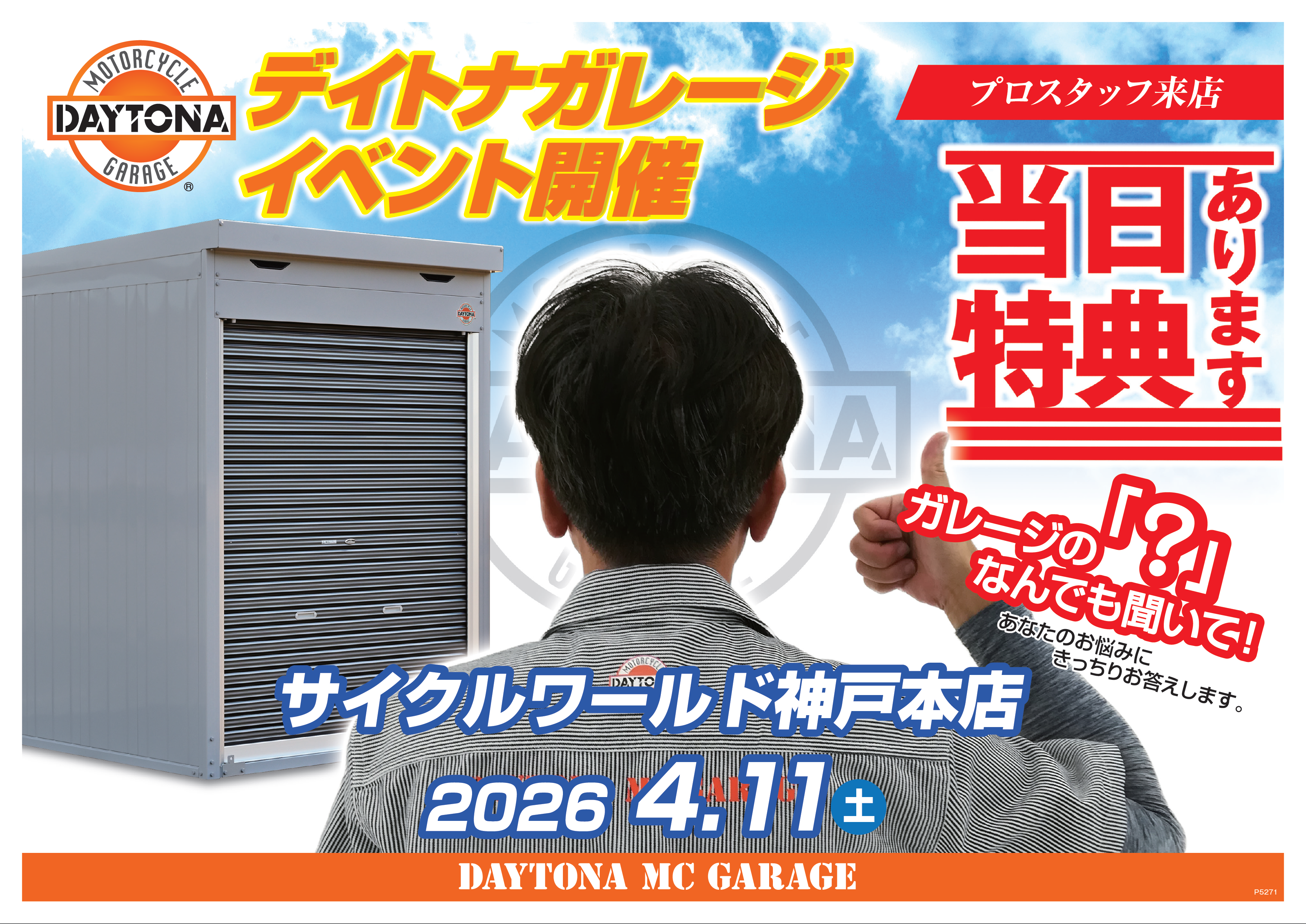 イベント出展情報!4/10~12「名古屋モーターサイクルショー」に新型ガレージ出展!・4/11「サイクルワールド神戸本店ガレージイベント」出展!